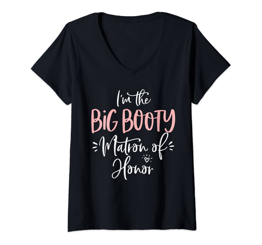 Amazon Com Womens Big Booty Matron Of Honor Funny Matching Bachelorette Party V Neck T Shirt Clothing Shoes Jewelry