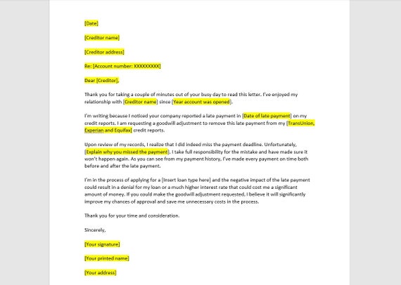 A late payment can do some serious damage. A goodwill letter is an unofficial letter sent to a creditor. Since negative reporting can.